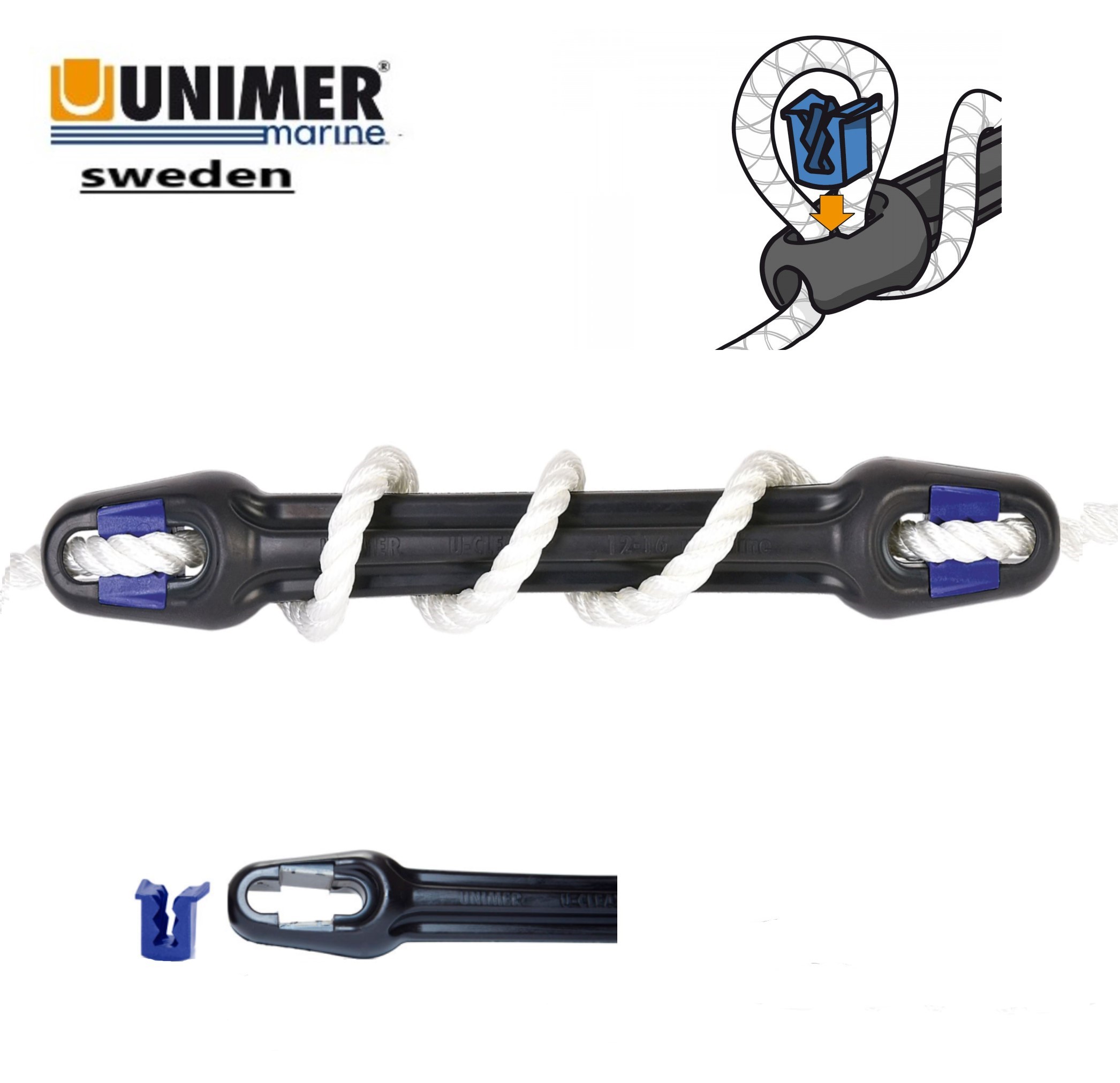 El amortiguador de amarre U-Cleat esta diseñado, respaldado y fabricado en Suecia,