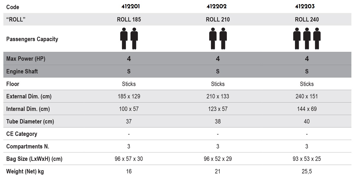 ● Todos los modelos de la línea Roll funcionan rápidamente y sus tubos son sencillos y rápidos de inflar.