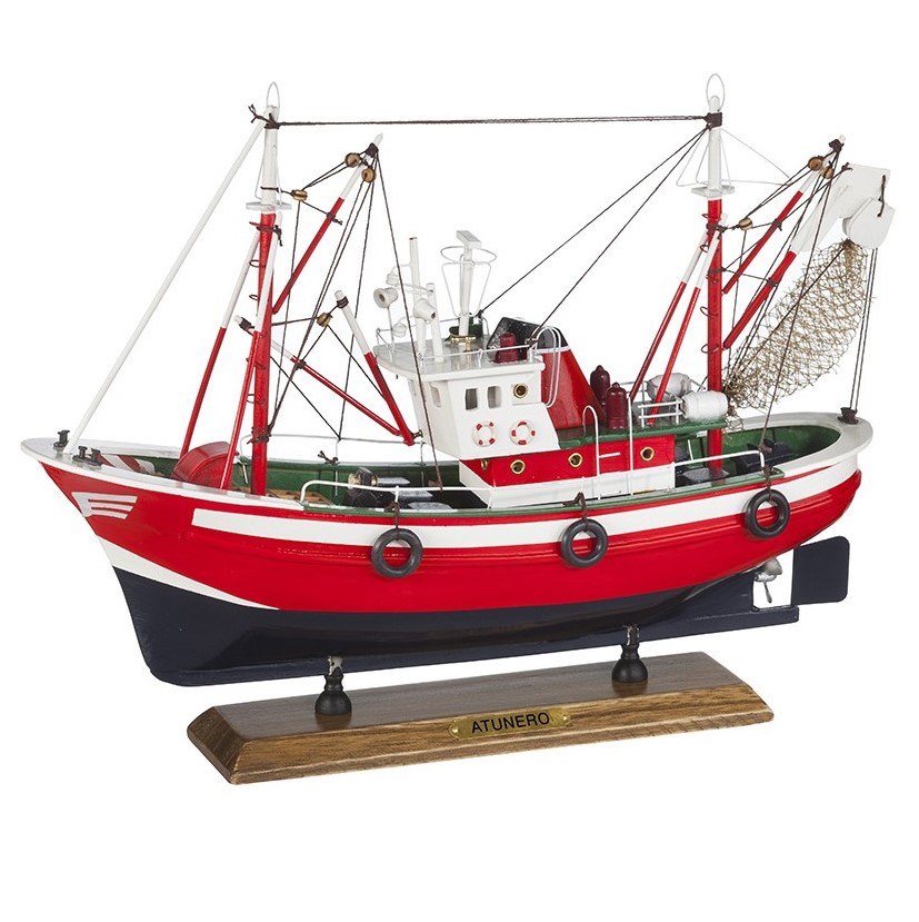 La maqueta decorativa de este barco está realizada en madera pintada y acabada de forma artesanal.