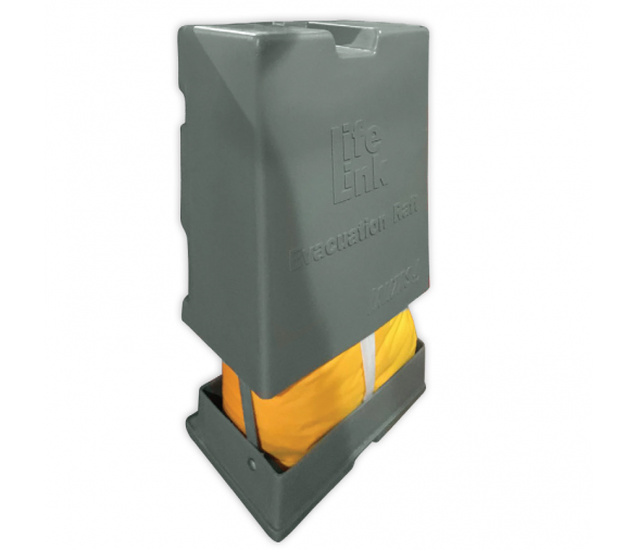 Al montar la balsa salvavidas de evacuación LifeLink en los rieles, el usuario logra