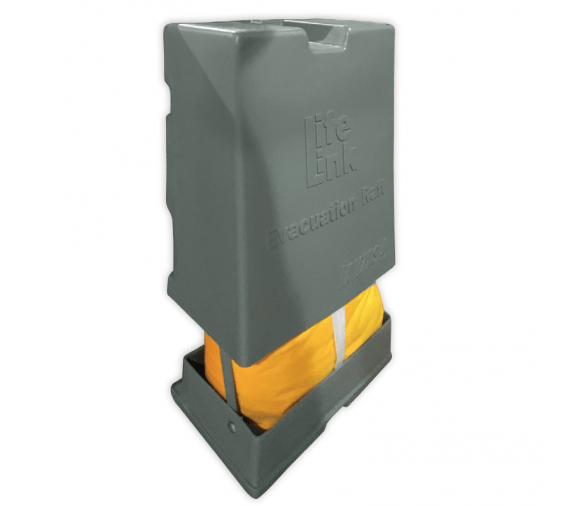 Al montar la balsa salvavidas de evacuación LifeLink en los rieles, el usuario logra