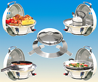 – Tapa en acero inoxidable le permite colocar sus ollas y sartenes usuales sobre las llamas.