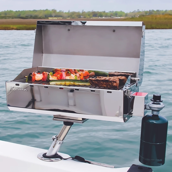 en Acero Inoxidable de Grado Marino 300 y viene completamente montado para una cómoda portabilidad.