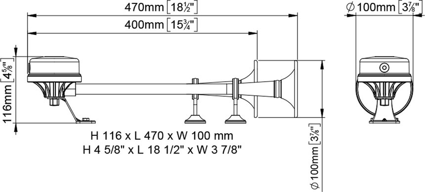 Bocina electromagnética única con corneta en acero inox.