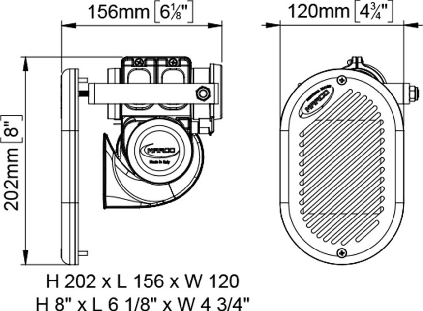 Bocina electroneumática empotrada con excepcional potencia sonora.