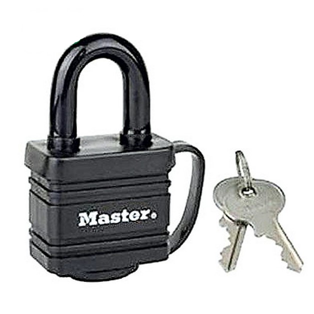 El candado laminado de Master Lock, con un cuerpo de 40 mm de ancho de acero laminado para una máxima resistencia y fiabilidad.