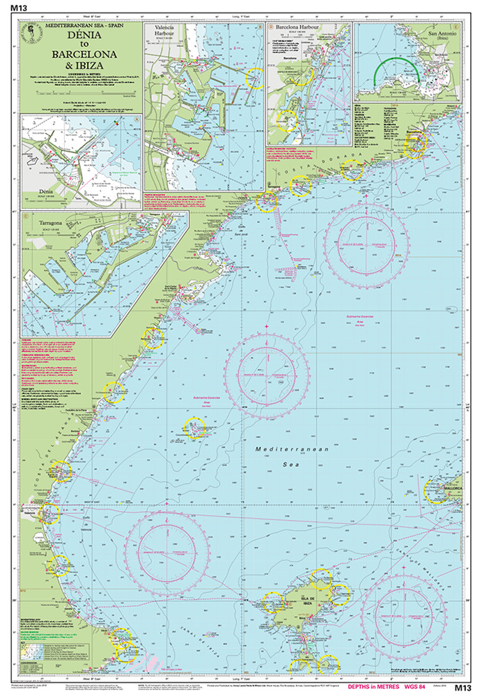 Carta Náutica Imray England : “Costa Dorada: Denia a Barcelona ” – incluye 5 mini planos