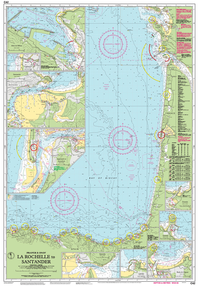 Se han actualizado las áreas de práctica de tiro y se muestran los desarrollos portuarios en Bilbao y Santoña.