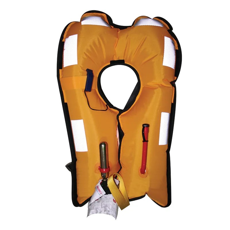 Chaleco inflable a gas que proporciona seguridad a un precio económico.
