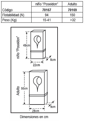 Equipado con silbato, bandas reflectantes y asa de izado de hombre al agua.