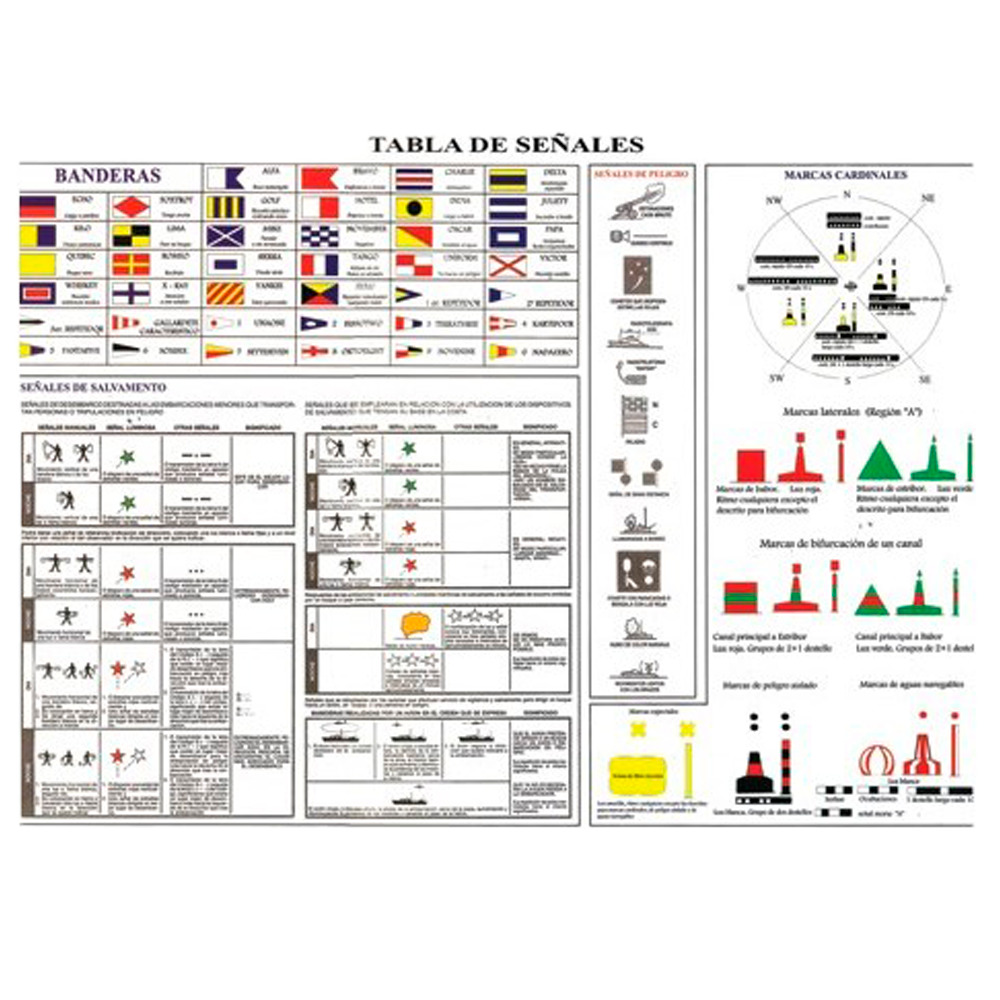 .Código y Tabla señales salvamento, PLASTIFICADO .32×24 cm.–(obligatori