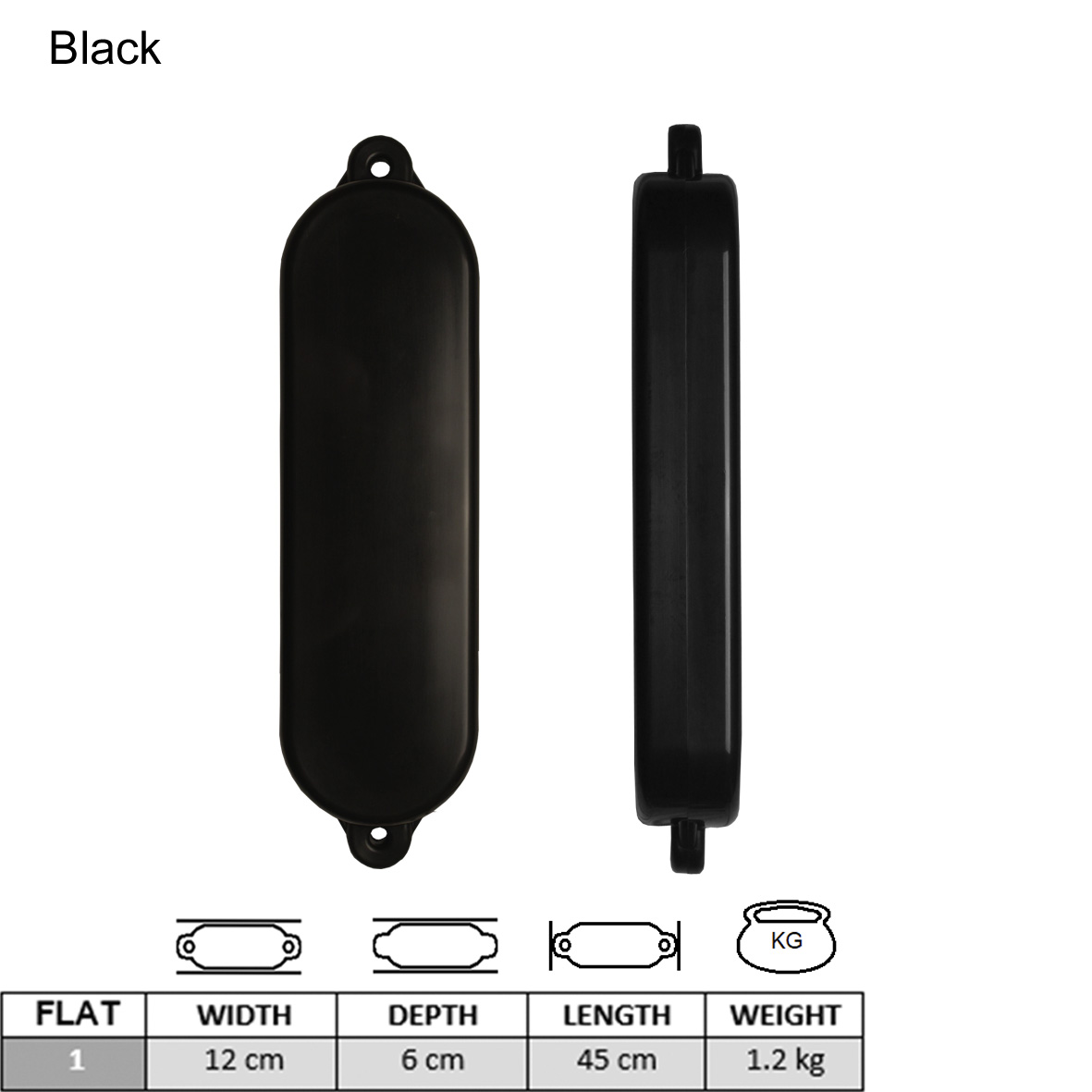 Defensa OCEAN–Serie U– Largo: 35-40-50-55-65-75 cm--negra