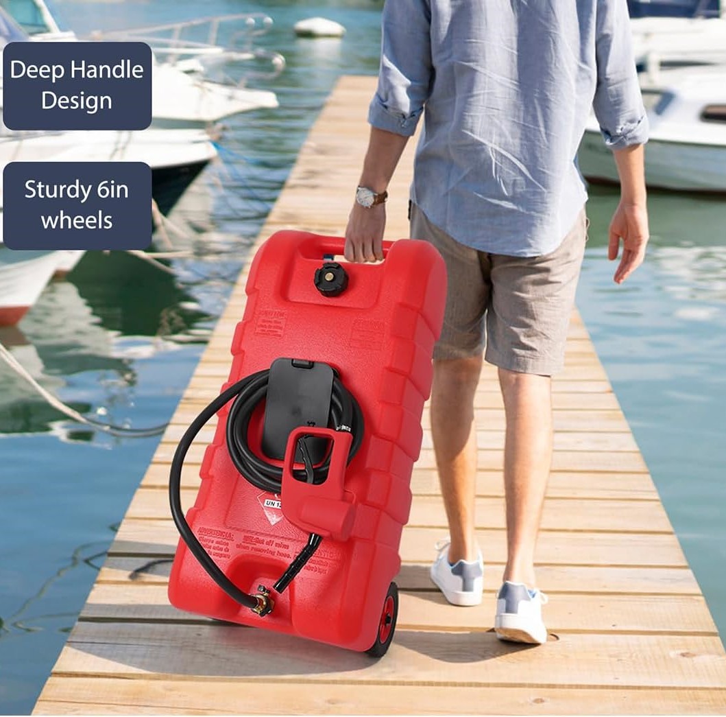 Portátil y diseñado para facilitar el almacenamiento y transporte de combustible.