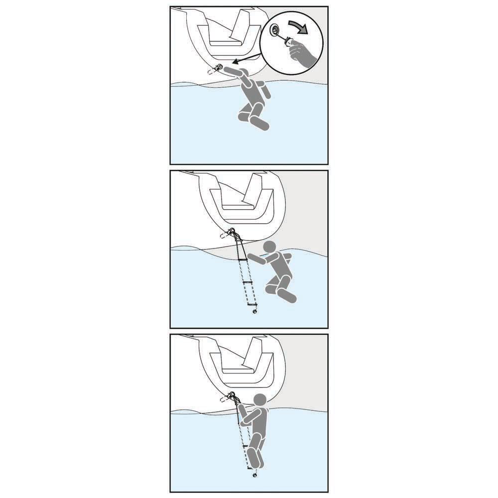 flash a la persona por la borda debe quitar la tapa, tire de la escalera hacia abajo y subir a bordo.