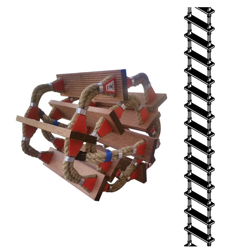 Fabricado de cuerda de Manila resistente al moho y escalones de madera dura.