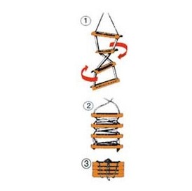 Fabricada con cabo de polipro­pi­leno y peldaños de plástico lexan,
