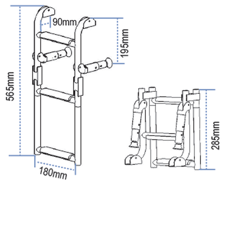 Escalera inox plegable en interior, 1+2 ó 2+2