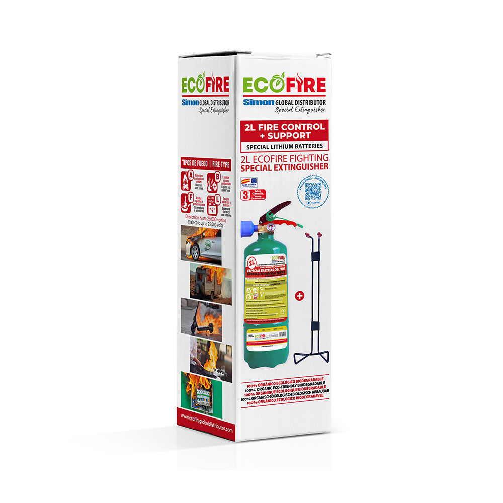 EXTINTOR 2 l + SOPORTE, EVITA LA PROPAGACIÓN DEL FUEGO DE BATERÍAS DE LITIO.