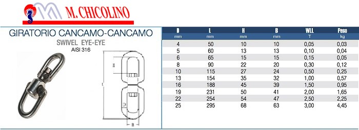 GIRATORIO CÁNCAMO-CÄNCAMO, INOX AISI-316.