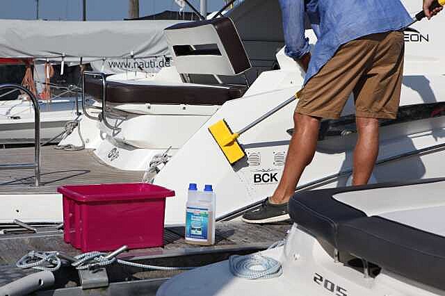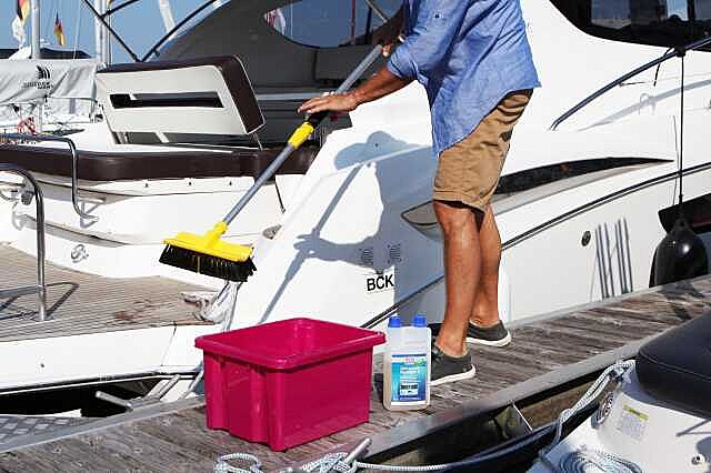 Enjuagar con agua las superficies que se deban limpiar. A continuación, pulverizar abundantemente o aplicar y frotar con una esponja en la concentración prevista. En caso de suciedad basta, tratar con un cepillo blando. Eliminar la suciedad desprendida y los restos de limpiador con un chorro de agua potente. Para evitar manchas de cal, secar la superficie con una gamuza o un paño de microfibras. También adecuado para la limpieza con equipos de alta presión. Dosificación: En caso de limpieza rutinaria, diluir el concentrado con agua hasta 1:20. En caso de embarcaciones muy sucias y de capas gruesas e incrustadas se recomienda una concentración de entre 1:8 y 1:12.