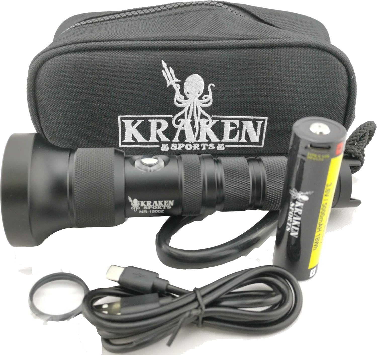 El foco Kraken NR-1800Z se ha actualizado con respecto al modelo NR-1500 anterior y utiliza la batería 21700 que proporciona una mayor salida de lúmenes y un mayor tiempo de uso.