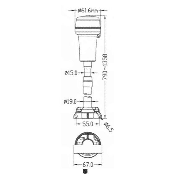 Luz de Tope Led-360º + Bicolor – extraible-(15-79 a 145 cm)–a pilas–