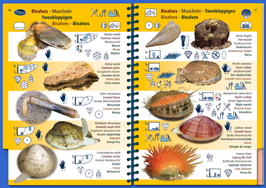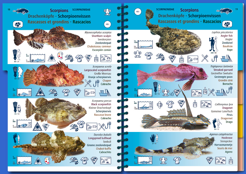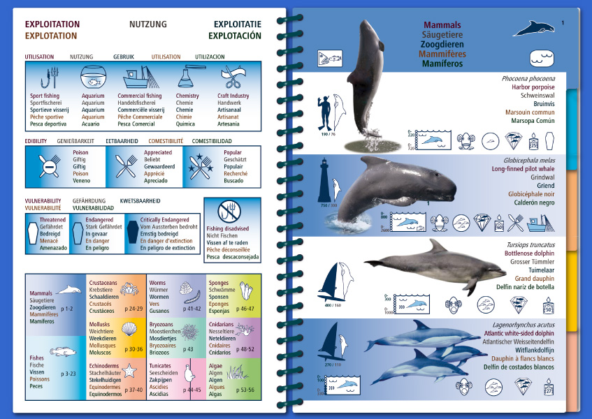 Los nombres de las especies vienen en cinco idiomas (inglés, alemán, holandés, francés y español).