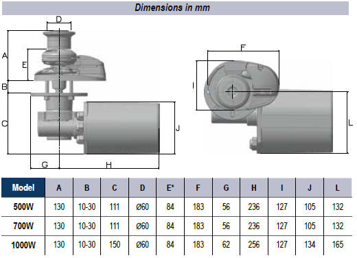 Molinete de ancla eléctrico vertical Lofrans BRONCE CROMADO -X1 500W / 12V Perfilado.