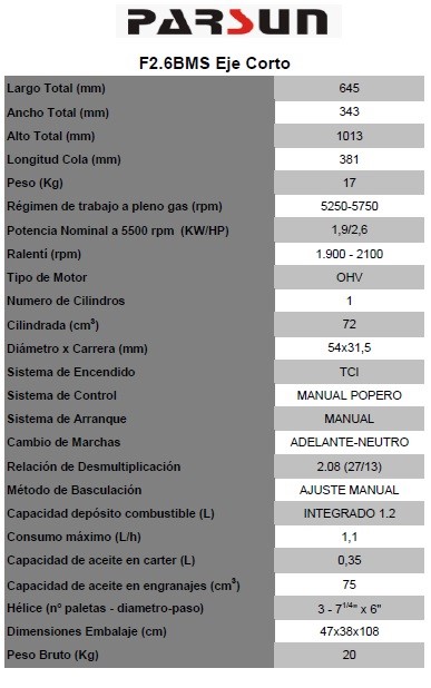 MOTOR PARSUN—2.6 CV BMS- Eje corto-4 tiempos