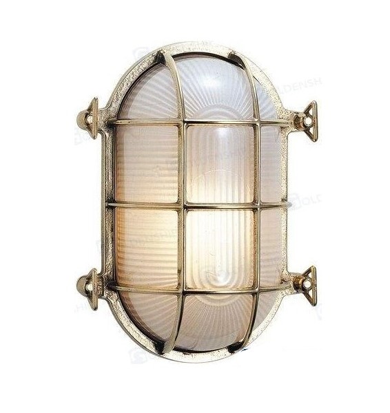 Plafón ojo de buey ovalado fabricado en latón pulido.