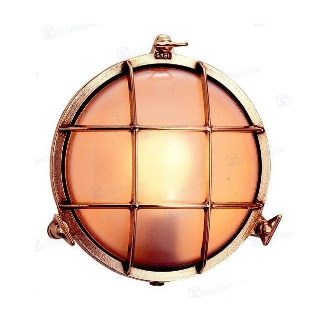 Plafón ojo de buey redondo fabricado en latón pulido.
