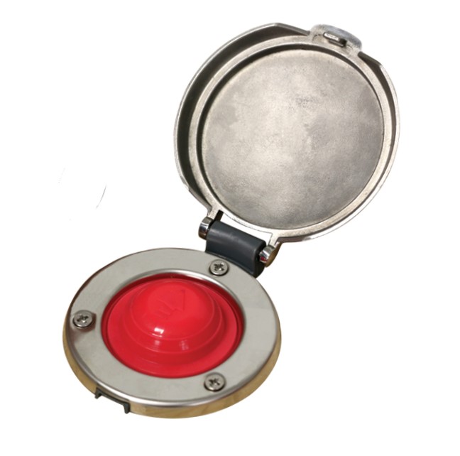 en una tapa de inox que deberá ser abierta para poder accionarlo