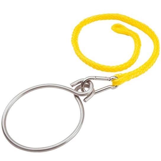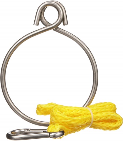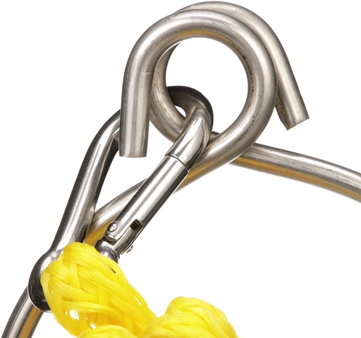 Servido con mosquetón y cabo con gaza para fijar en la boya