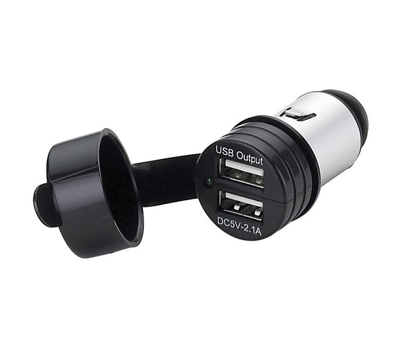 Adaptador para doble USB con tapa, fusible y Led de activación.