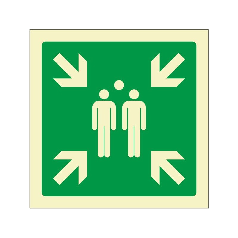 Señalización IMO–Vinilo ó PVC–EVACUACION PUNTO–15x15cm
