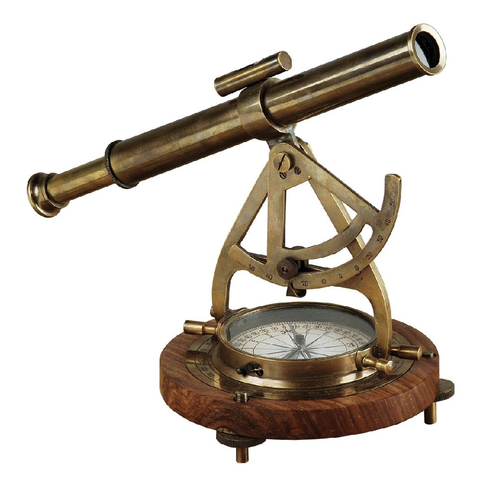 Reproducción de un teodolito en latón envejecido con plataforma de