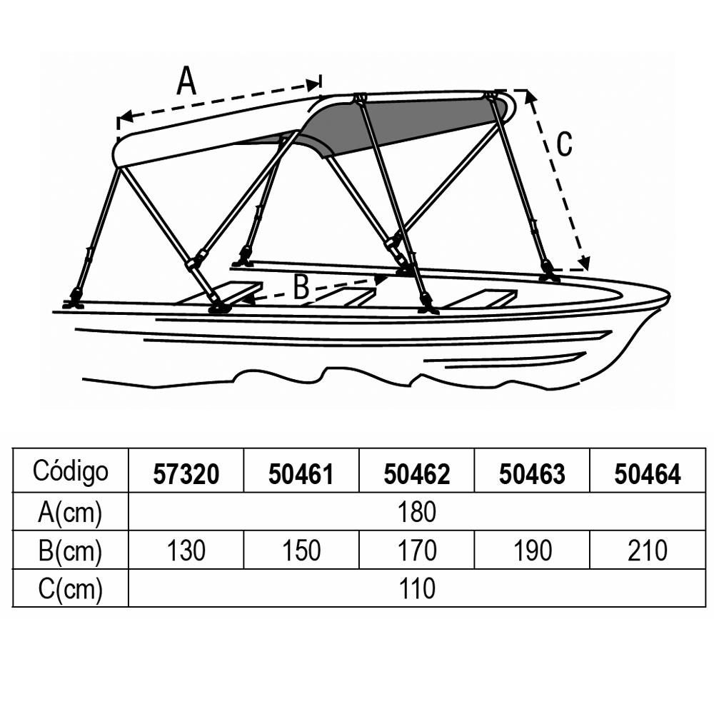 Diseñado para proporcionar sombra en pequeñas embarcaciones rígidas y neumáticas.