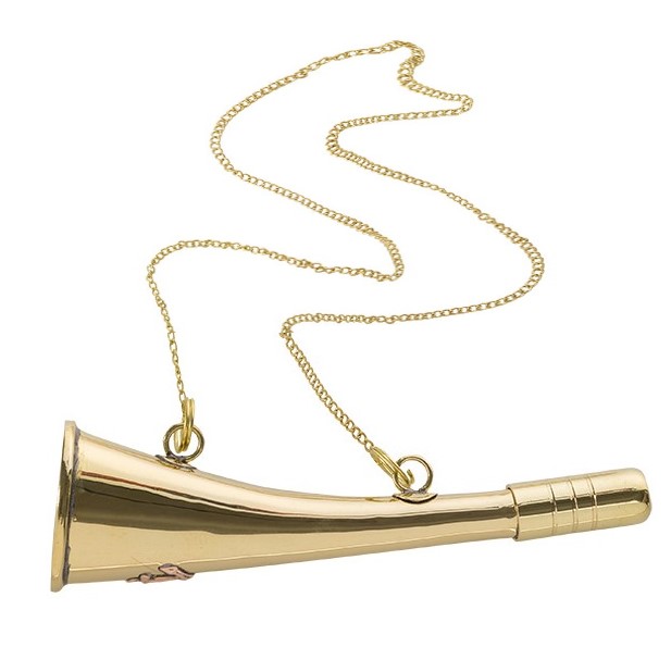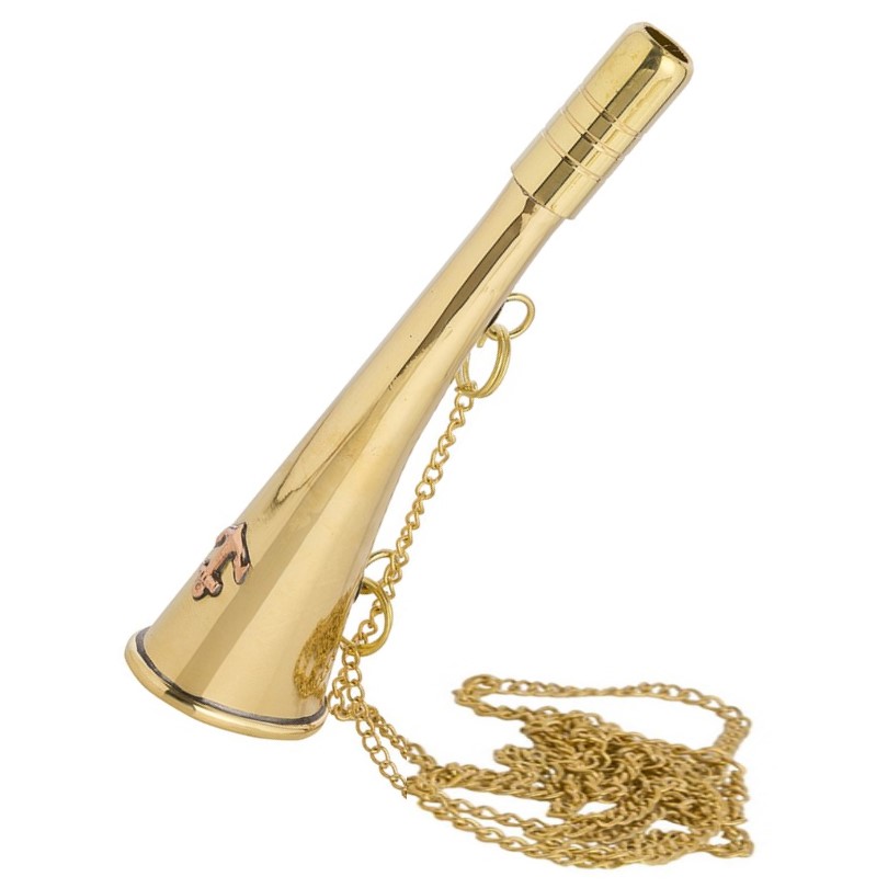 Bocina de niebla de latón brillante con su cadenita.