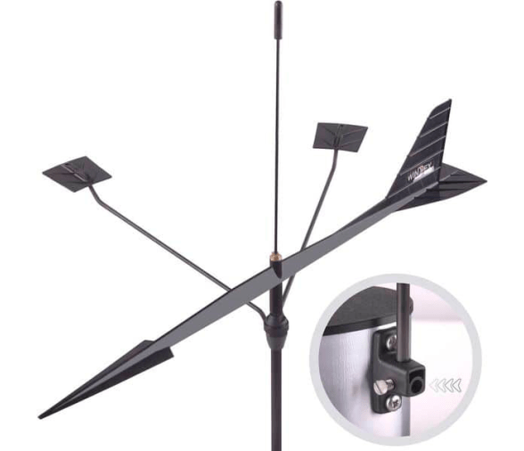 Una varilla a prueba de pájaros se extiende otros 190 mm (7,5 pulgadas) por encima de la veleta para disuadir a las aves y evitar que se posen.