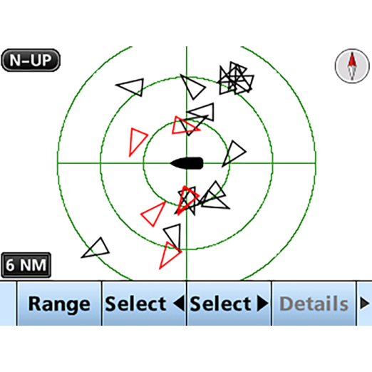 el IC-M510 puede mostrar información de tráfico de embarcaciones AIS en tiempo real en la pantalla.