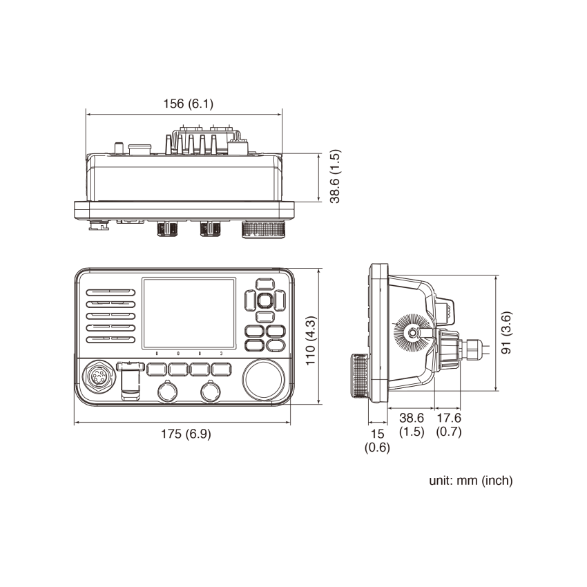 El IC-M510 es delgado (profundidad: 53,6 mm; 2,1 pulgadas) y fácil de instalar en su embarcación. Su diseño elegante completamente nuevo es adecuado para montaje en panel o muñón.