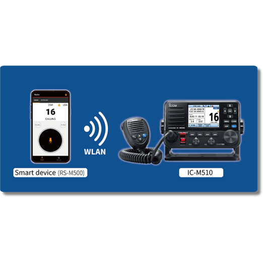 ICOM IC-M510E AIS Emisora VHF DSC se puede descargar una APP gratuita en el movil para convertirlo en una segunda estación de la radio. Tambien se pueden realizar comunicaciones internas entre el móvil y el VHF..