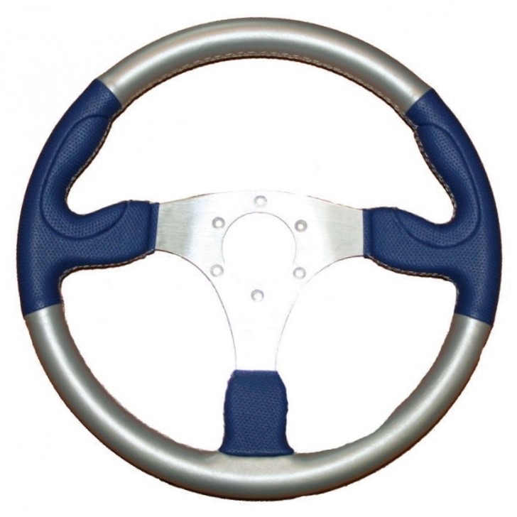 Volante Sport- simil-piel gris y azul.-Ø35 cm
